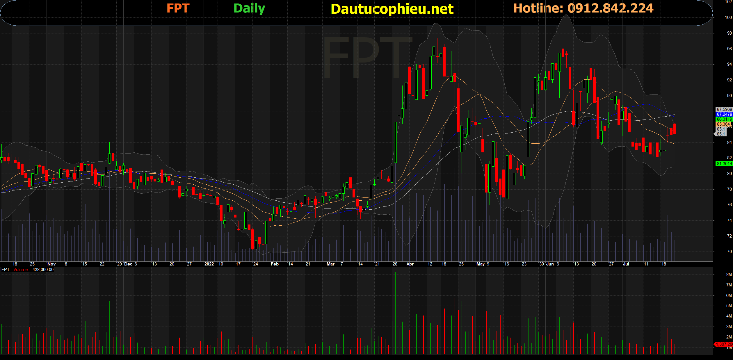 Đồ thị cổ phiếu FPT phiên giao dịch ngày 22/07/2022. Nguồn: AmiBroker