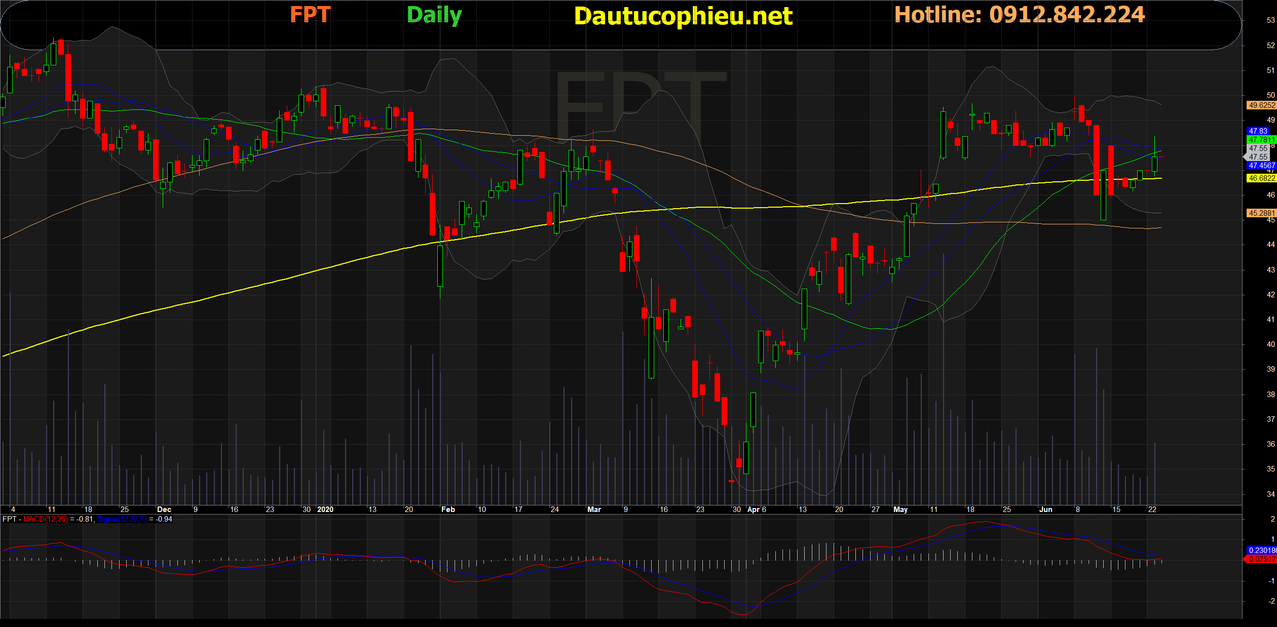 Đồ thị cổ phiếu FPT phiên giao dịch ngày 24/06/2020. Nguồn: AmiBroker