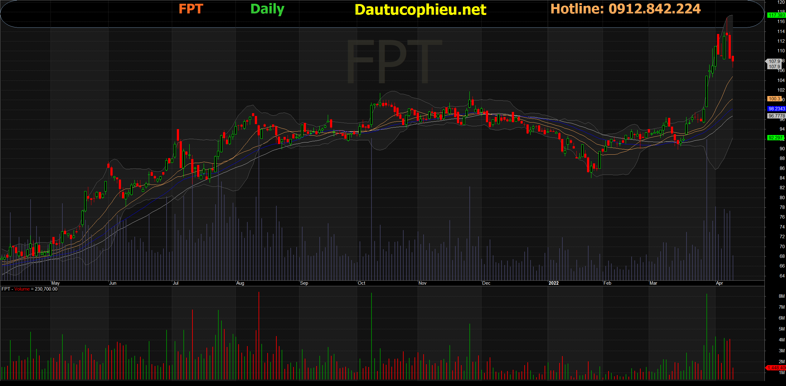 Đồ thị cổ phiếu FPT phiên giao dịch ngày 21/04/2022. Nguồn: AmiBroker