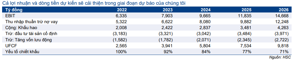 HSC dự báo lợi nhuận từ các khoản đầu tư khác, chủ yếu tại các doanh nghiệp mới thành lập, sẽ ở mức thấp trong năm 2022 và tăng trưởng trở lại trong năm 2023 và 2024.