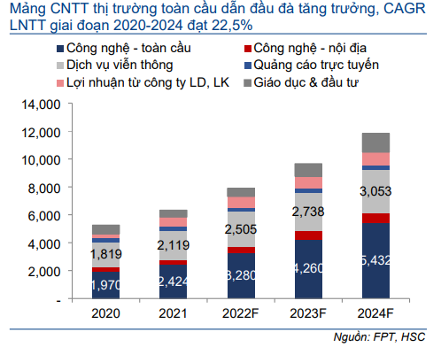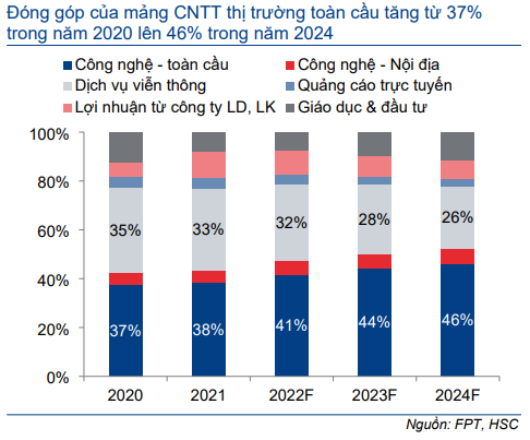 Chúng tôi cho rằng mảng giáo dục sẽ tăng trưởng khoảng 30% mỗi năm trong giai đoạn 2022-2024 do FPT tiếp tục mở rộng quy mô bằng cách mở các trường tiểu học và trung học cơ sở mới tại các tỉnh thành khác ngoài Hà Nội và TP.HCM.
