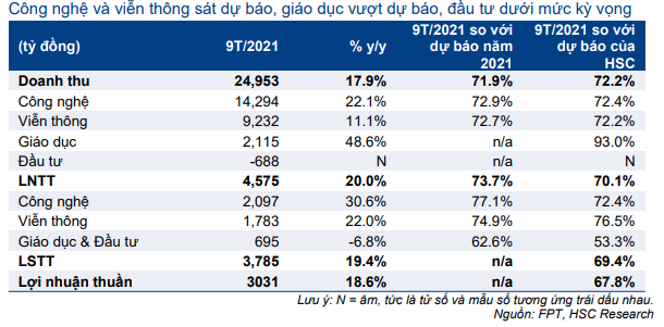 Trong số các hoạt động kinh doanh cốt lõi, KQKD mảng CNTT và viễn thông nhìn chung sát với dự báo của chúng tôi, trong khi mảng giáo dục vượt dự báo của chúng tôi.