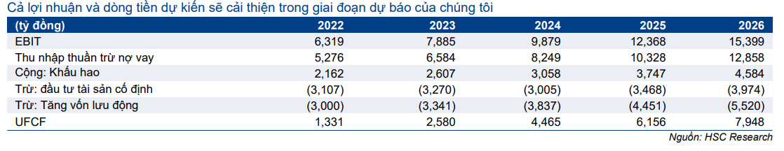 Chúng tôi dự báo lợi nhuận thuần sẽ tăng trưởng lần lượt 28,9% và 28,8% trong năm 2022 và 2023. Chúng tôi cũng đưa ra dự báo lần đầu cho năm 2024 với lợi nhuận thuần tăng trưởng 28,0%. Tốc độ tăng trưởng gộp bình quân lợi nhuận thuần trong giai đoạn 2020-2024 được dự báo sẽ đạt 26,0%.