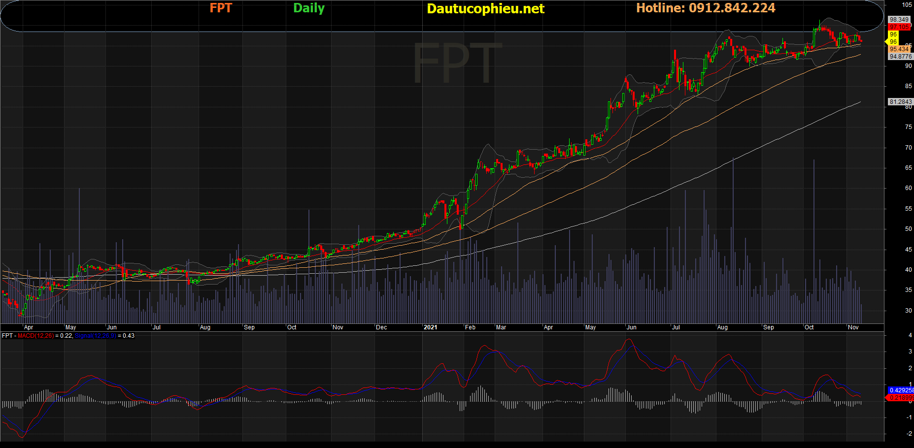 Đồ thị cổ phiếu FPT phiên giao dịch ngày 10/11/2021. Nguồn: AmiBroker