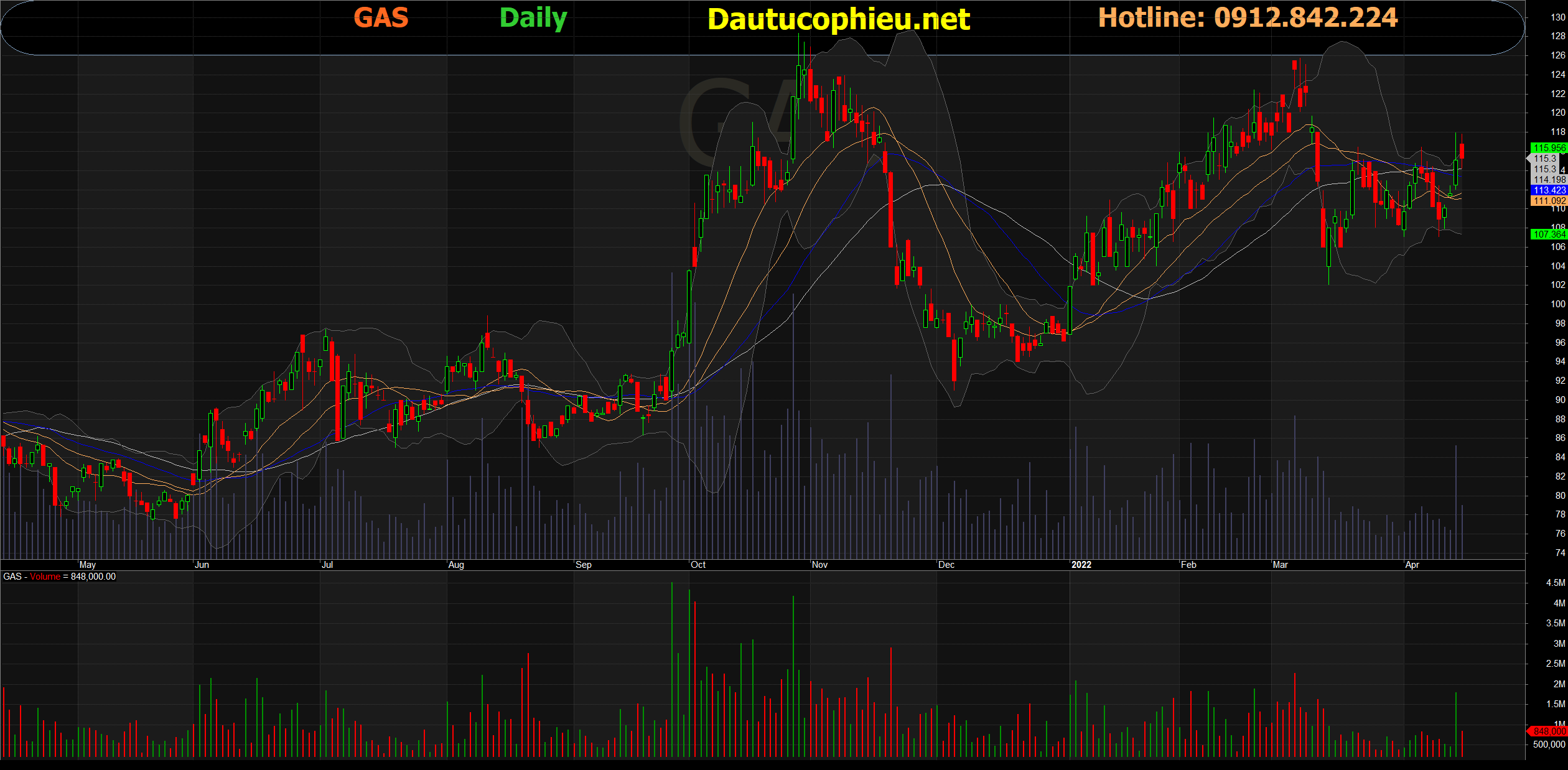 Đồ thị cổ phiếu GAS phiên giao dịch ngày 18/04/2022. Nguồn: AmiBroker