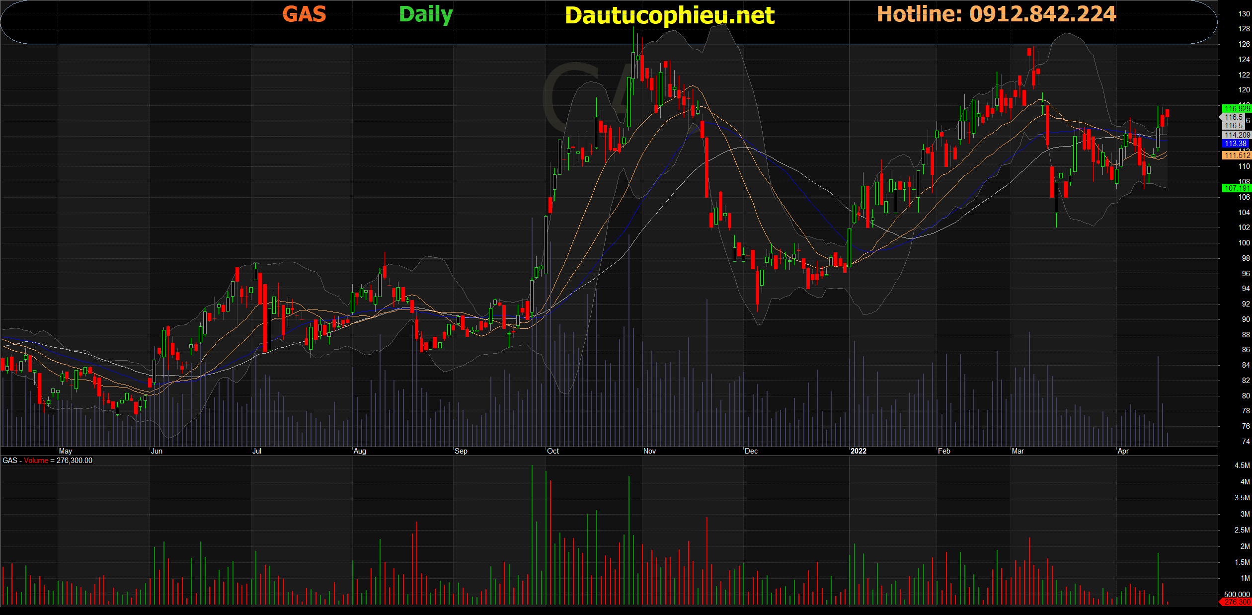 Đồ thị cổ phiếu GAS phiên giao dịch ngày 19/04/2022. Nguồn: AmiBroker