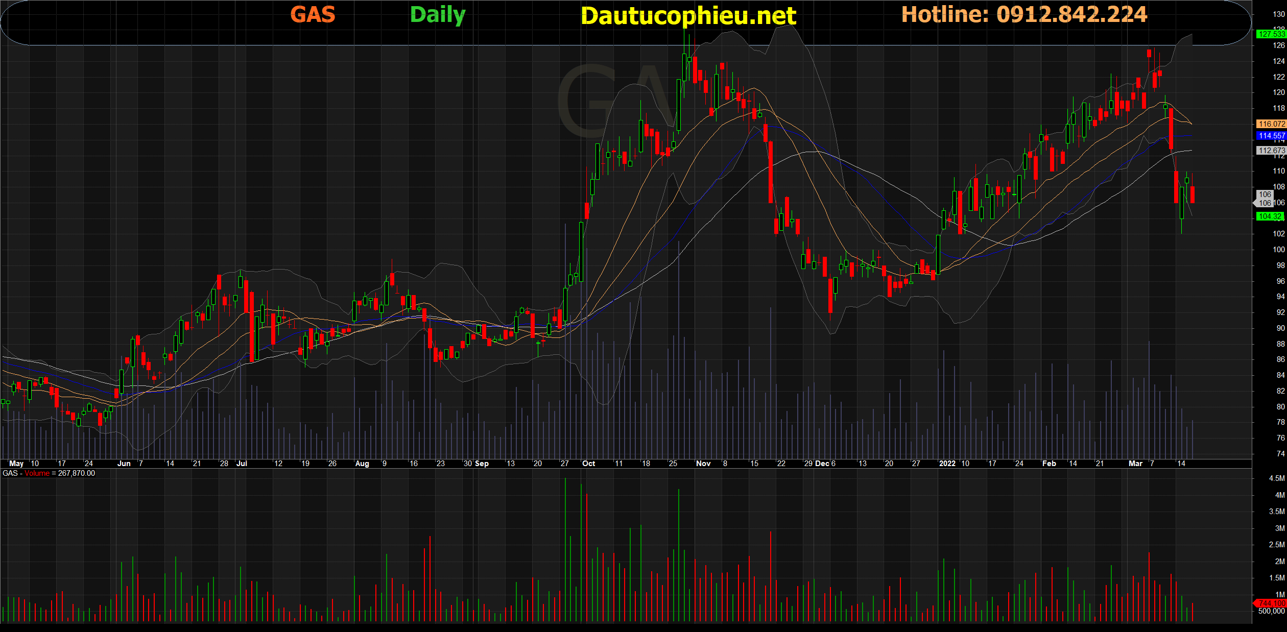 Đồ thị cổ phiếu GAS phiên giao dịch ngày 08/04/2022. Nguồn: AmiBroker