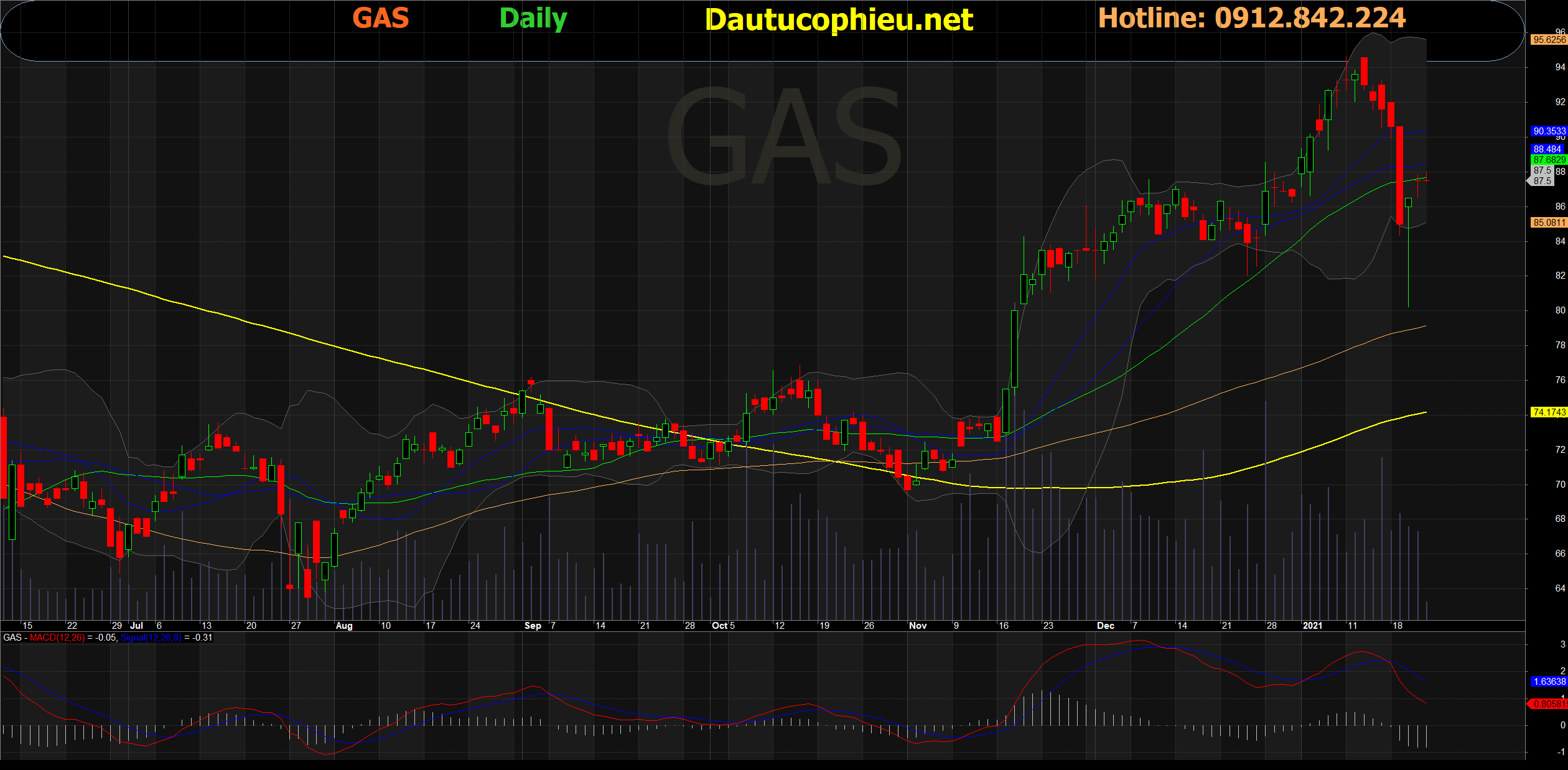 Đồ thị cổ phiếu GAS phiên giao dịch ngày 22/01/2021. Nguồn: AmiBroker