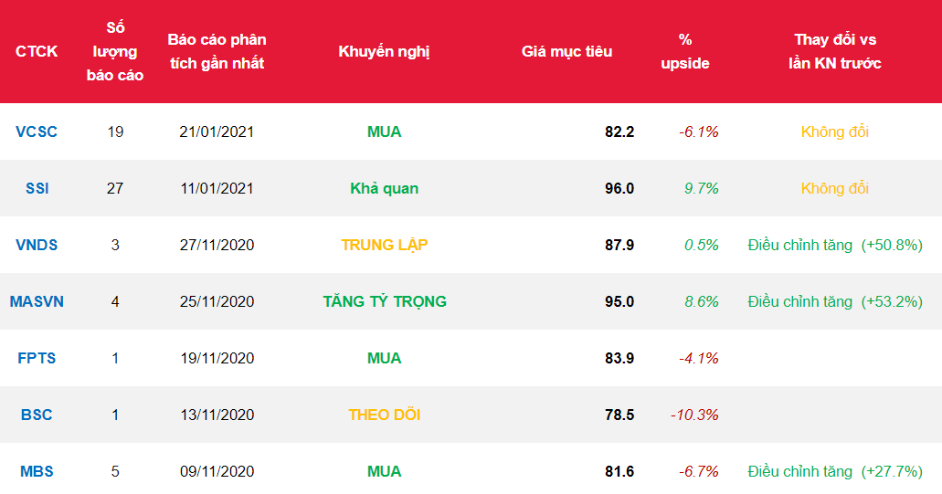- Tổng Công ty Khí Việt Nam (Cổ phiếu GAS) công bố KQKD quý 4/2020 với doanh thu đạt 15,5 nghìn tỷ đồng (-10,4% YoY) và LNST sau lợi ích CĐTS đạt 1,7 nghìn tỷ đồng (-44,1% YoY), chủ yếu nhờ sản lượng khí thương phẩm giảm 13,9% trong quý 4 trong khi giá dầu nhiên liệu trung bình là 272 USD/tấn (đi ngang so với cùng kỳ).