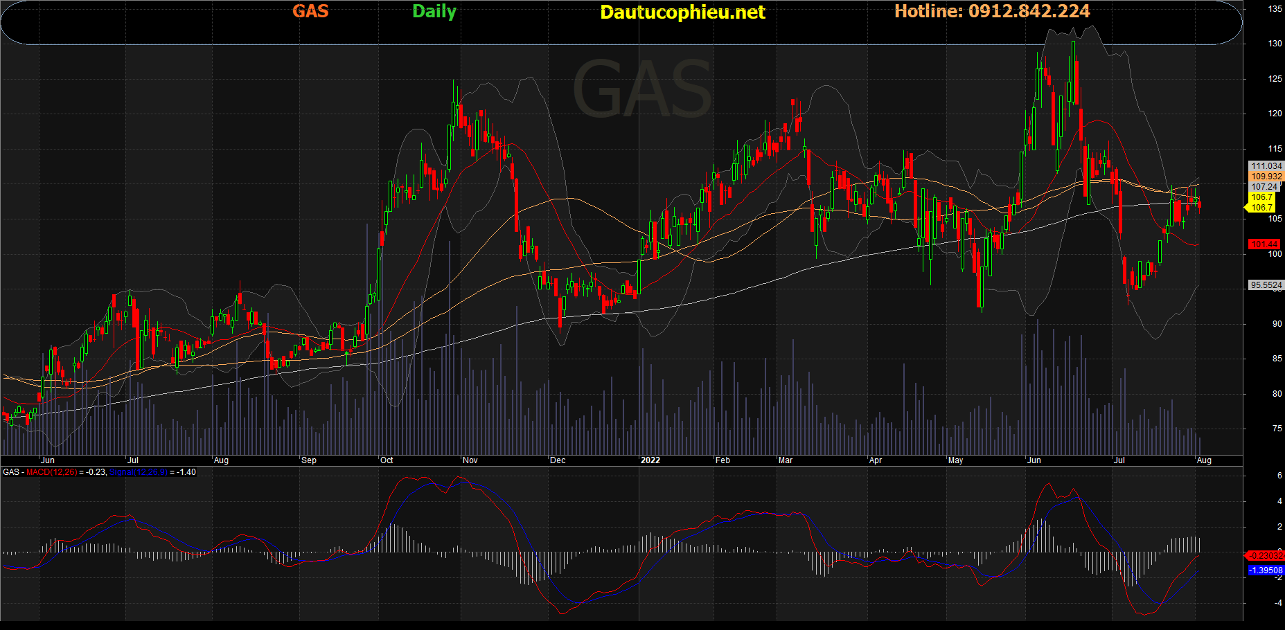 Đồ thị cổ phiếu GAS phiên giao dịch ngày 02/08/2022. Nguồn: AmiBroker