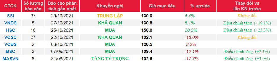 - KQKD Q3 vượt trội khiến chúng tôi điều chỉnh tăng 10,2% ước tính LNST năm 2021. Đối với năm 2022, chúng tôi tăng giả định giá dầu thô Brent từ 68 USD/ thùng lên 75 USD/thùng (+7% YoY). Theo đó, ước tính LNST năm 2022 là 11,8 nghìn tỷ đồng (từ mức trước là 10,9 nghìn tỷ đồng) tăng 22% YoY. Chúng tôi đưa ra giá mục tiêu mới là 130.000 đồng/cp (từ 118.500 đồng/cp), tương ứng hệ số P/E mục tiêu là 20x (từ 19x) và EV/EBITDA là 11,5x (từ 11x) và sử dụng ước tính lợi nhuận năm 2022.