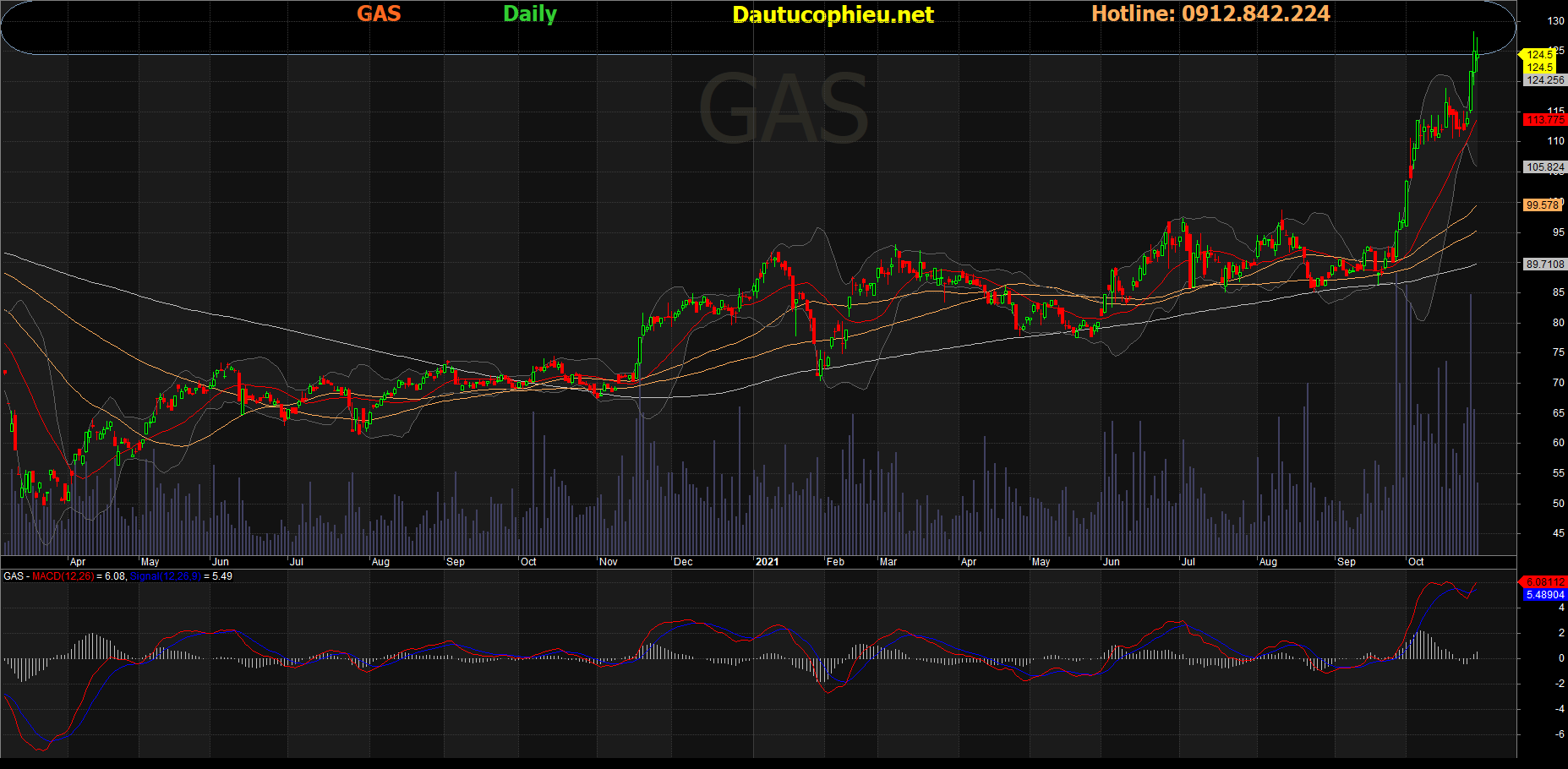 Đồ thị cổ phiếu GAS phiên giao dịch ngày 29/10/2021. Nguồn: AmiBroker