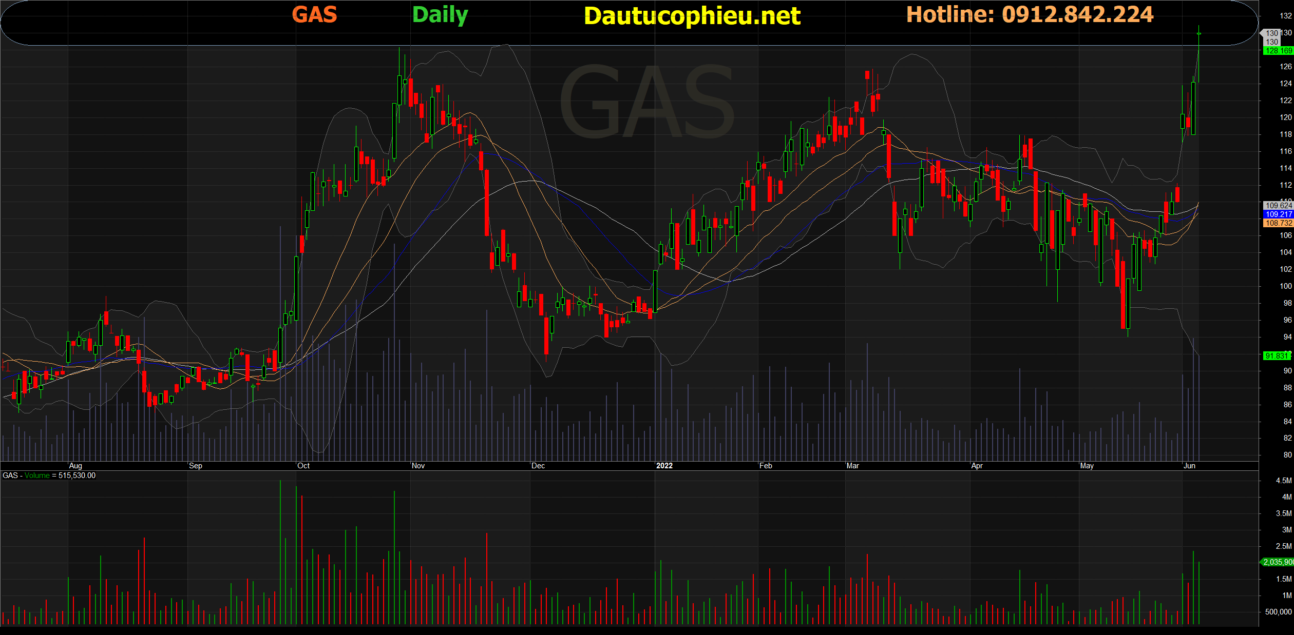 Đồ thị cổ phiếu GAS phiên giao dịch ngày 07/05/2022. Nguồn: AmiBroker