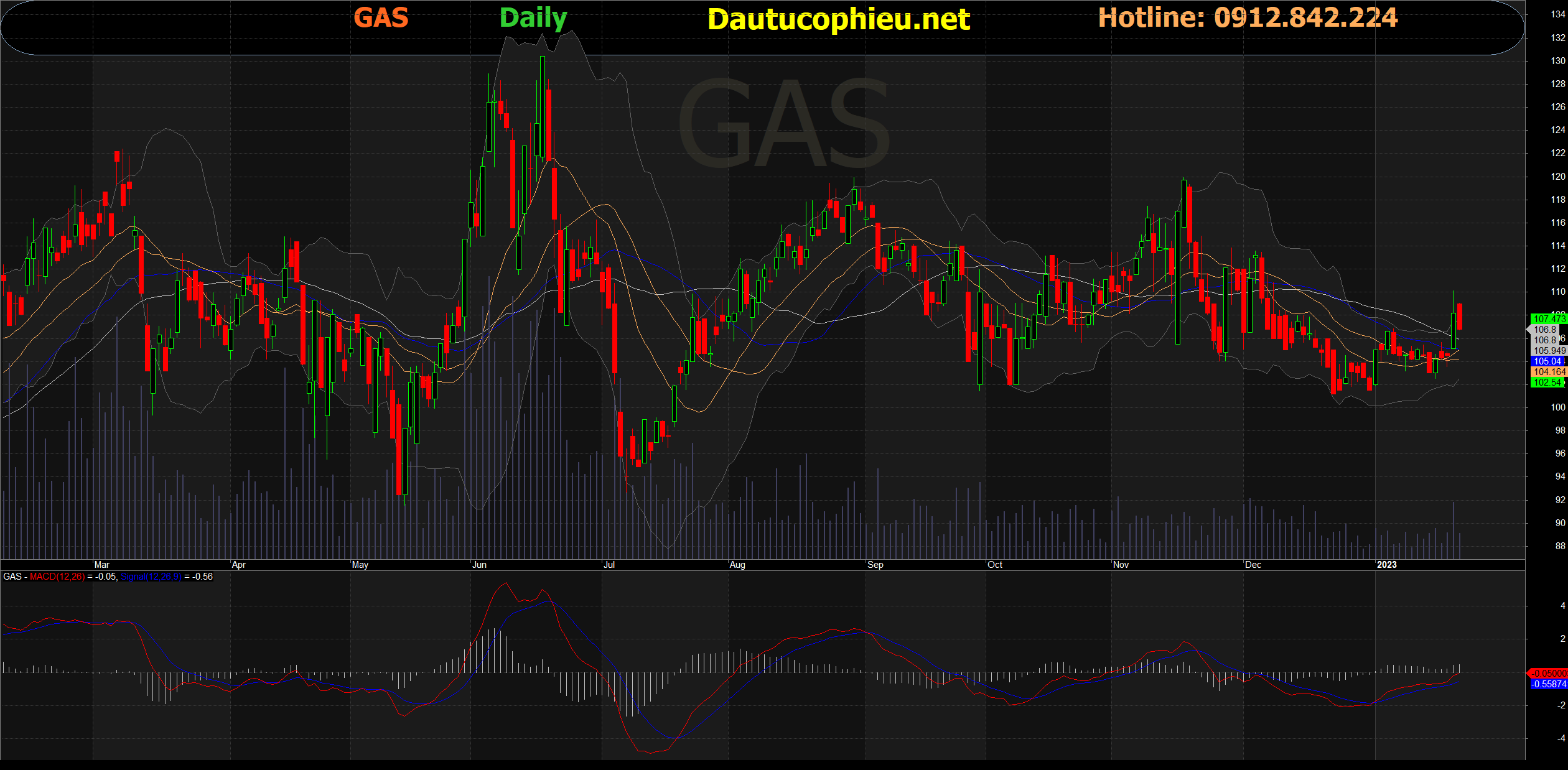 Đồ thị cổ phiếu GAS phiên giao dịch ngày 30/01/2023. Nguồn: AmiBroker