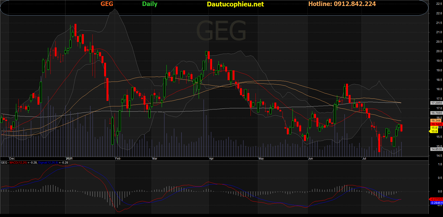 Đồ thị cổ phiếu GEG phiên giao dịch ngày 23/07/2021. Nguồn: AmiBroker