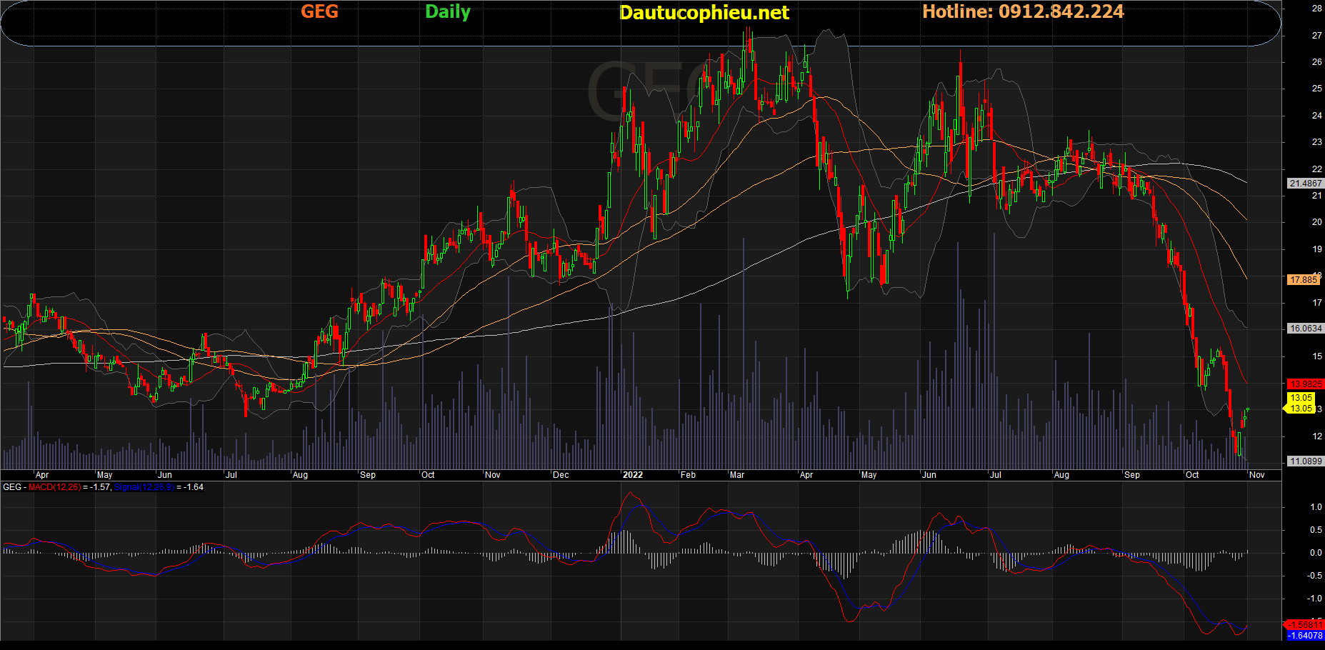 Đồ thị cổ phiếu GEG phiên giao dịch ngày 01/11/2022. Nguồn: AmiBroker