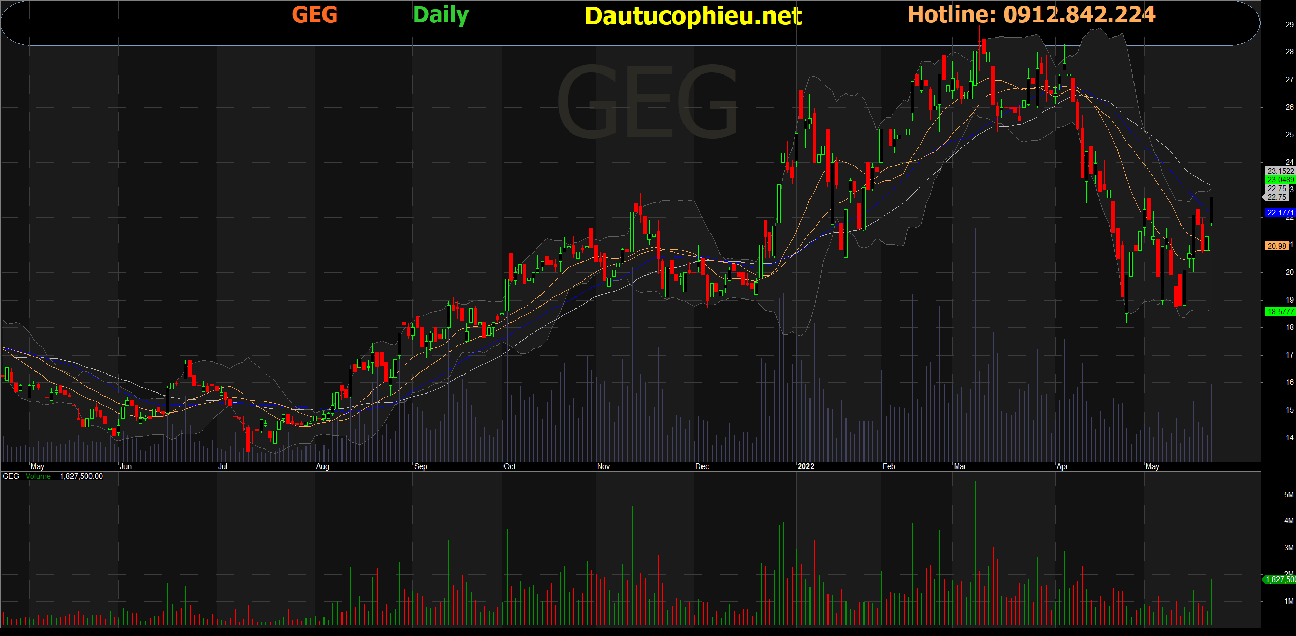 Đồ thị cổ phiếu GEG phiên giao dịch ngày 26/05/2022. Nguồn: AmiBroker