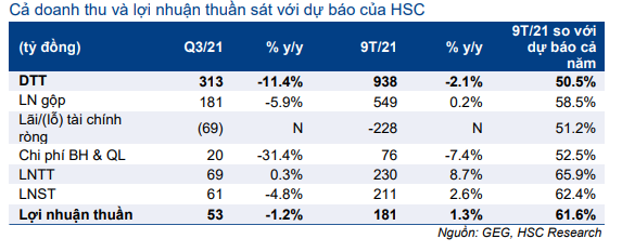 Bảng 1: KQKD Q3/2021 và 9T/2021, GEG