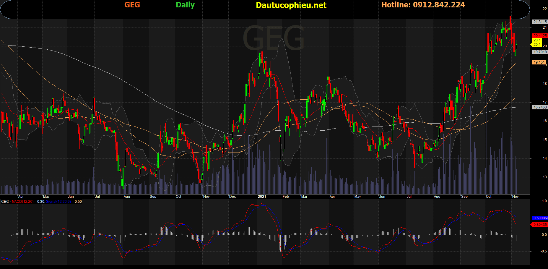 Đồ thị cổ phiếu GEG phiên giao dịch ngày 05/11/2021. Nguồn: AmiBroker