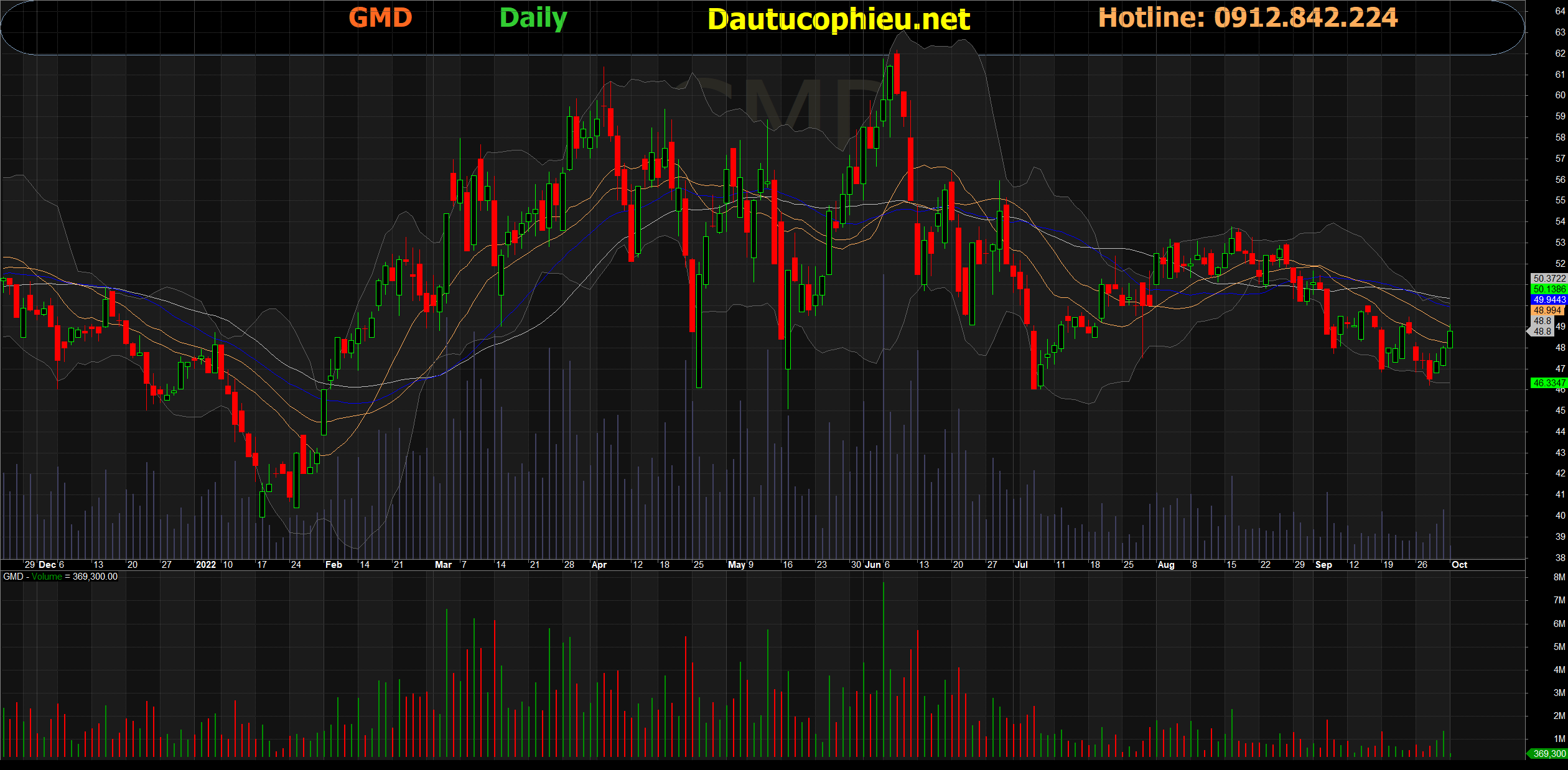Đồ thị cổ phiếu GMD phiên giao dịch ngày 03/10/2022. Nguồn: AmiBroker