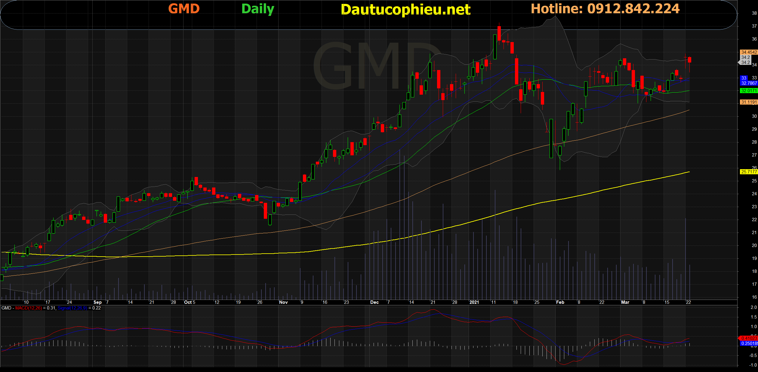 Đồ thị cổ phiếu GMD phiên giao dịch ngày 24/03/2021. Nguồn: AmiBroker