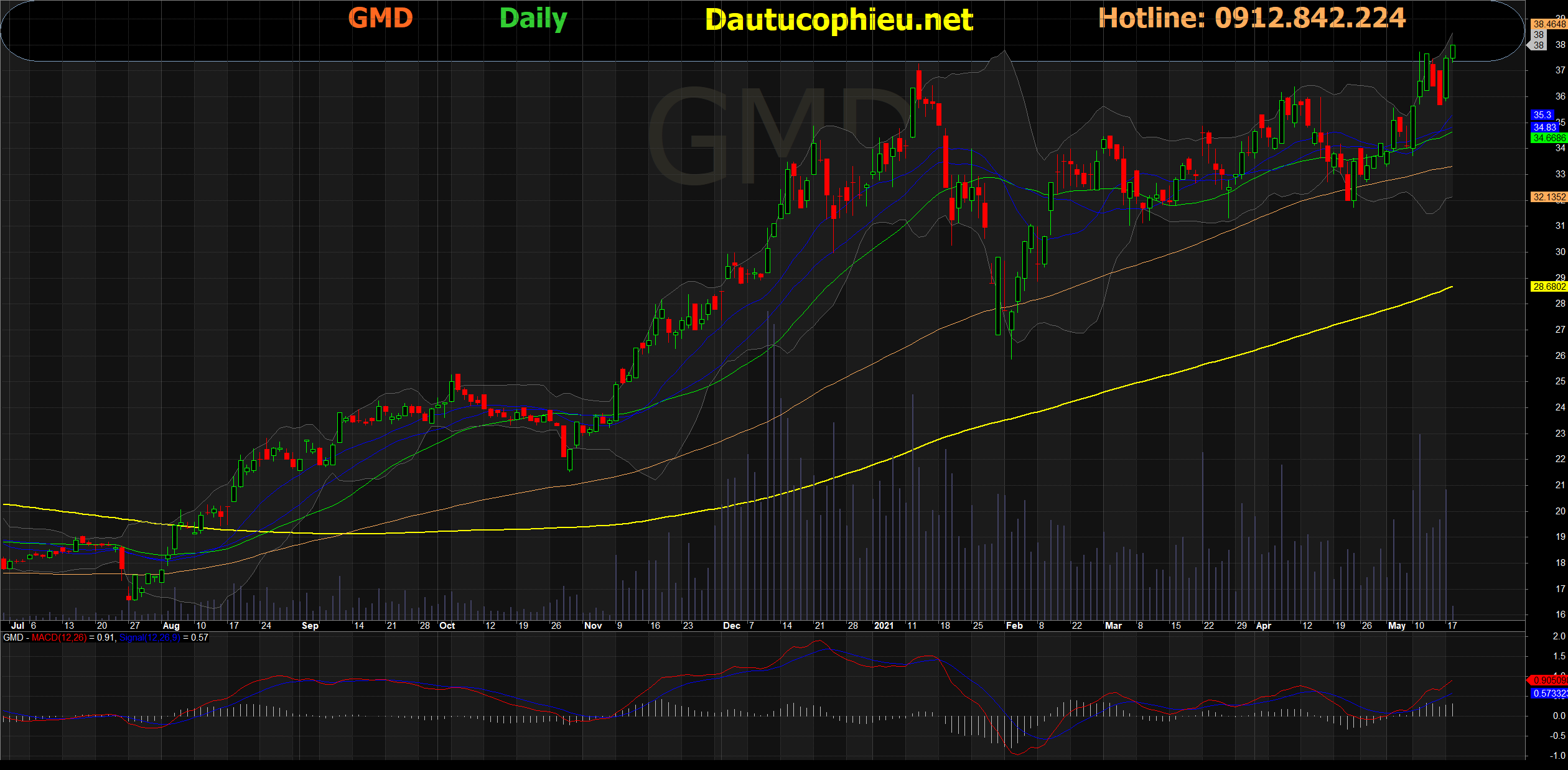 Đồ thị cổ phiếu GMD phiên giao dịch ngày 18/05/2021. Nguồn: AmiBroker