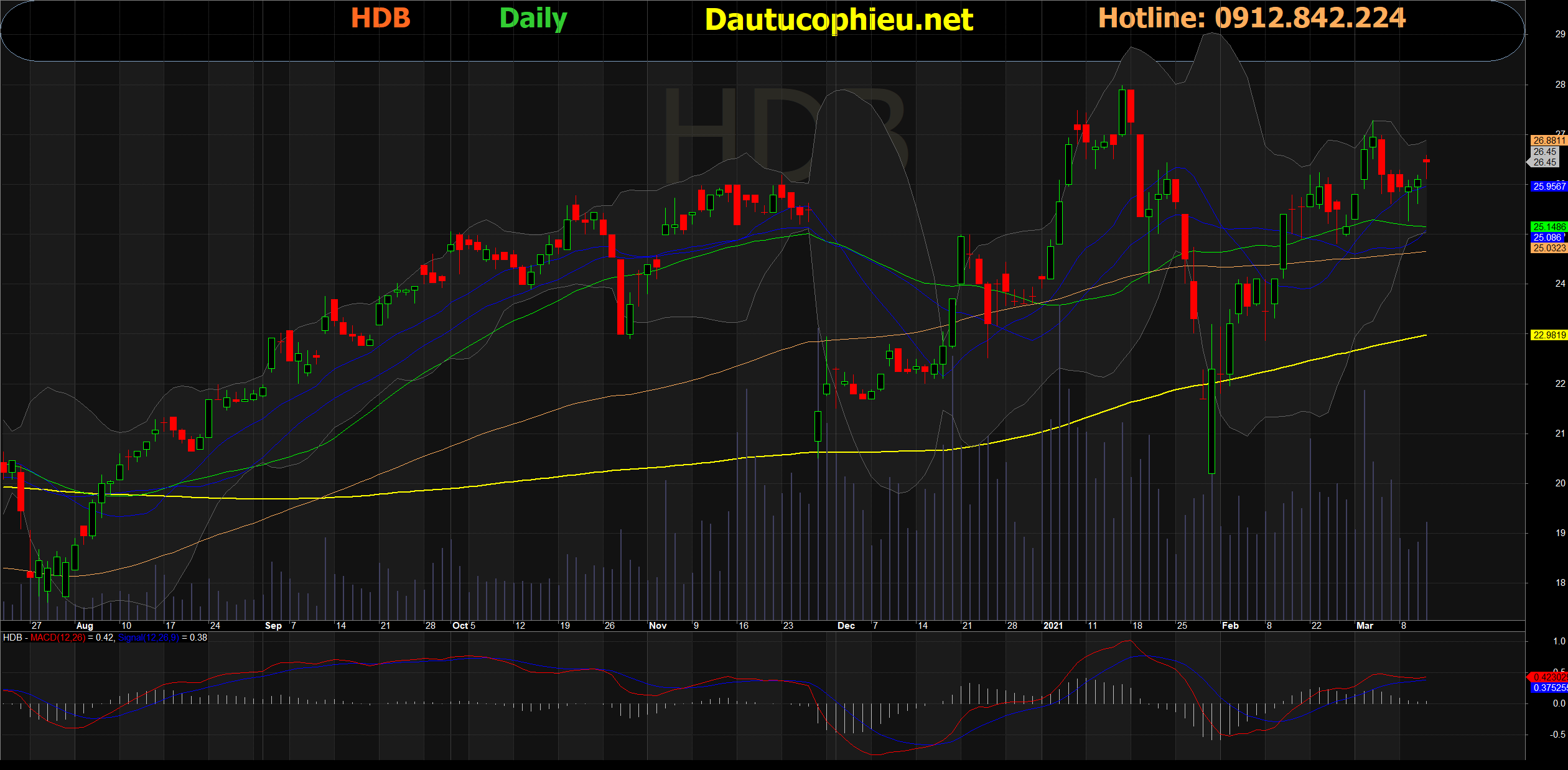 Đồ thị cổ phiếu HDB phiên giao dịch ngày 11/03/2021. Nguồn: AmiBroker