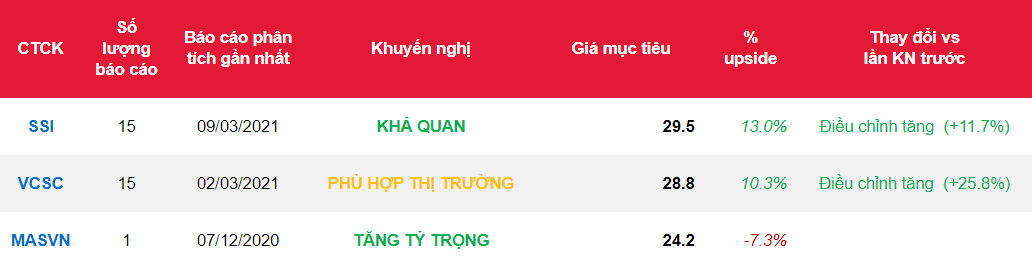 - Nâng xếp hạng lên Khả quan. HDB là một trong số rất ít ngân hàng còn room cho nhà đầu tư nước ngoài cũng như vẫn còn có thể có yếu tố đột biến từ một thương vụ bancassurance độc quyền trong tương lai. Chúng tôi cho rằng việc đa dạng hóa các dòng thu nhập như năm 2020 đang đi đúng hướng và có thể mở ra tiềm năng tăng trưởng TOI mạnh mẽ cho năm 2021. Việc ngân hàng duy trì được doanh số bán bancassurance ở mức tốt có thể chứng minh được năng lực bán hàng cũng như tạo ra một lợi thế nhất định cho việc đàm phán hợp đồng bancassurance độc quyền sau này. Giá mục tiêu 1 năm của chúng tôi đối với HDB là 29.500 đồng/ cổ phiếu, cao hơn 13,7% so với giá hiện tại – do đó chúng tôi nâng xếp hạng Khả quan.