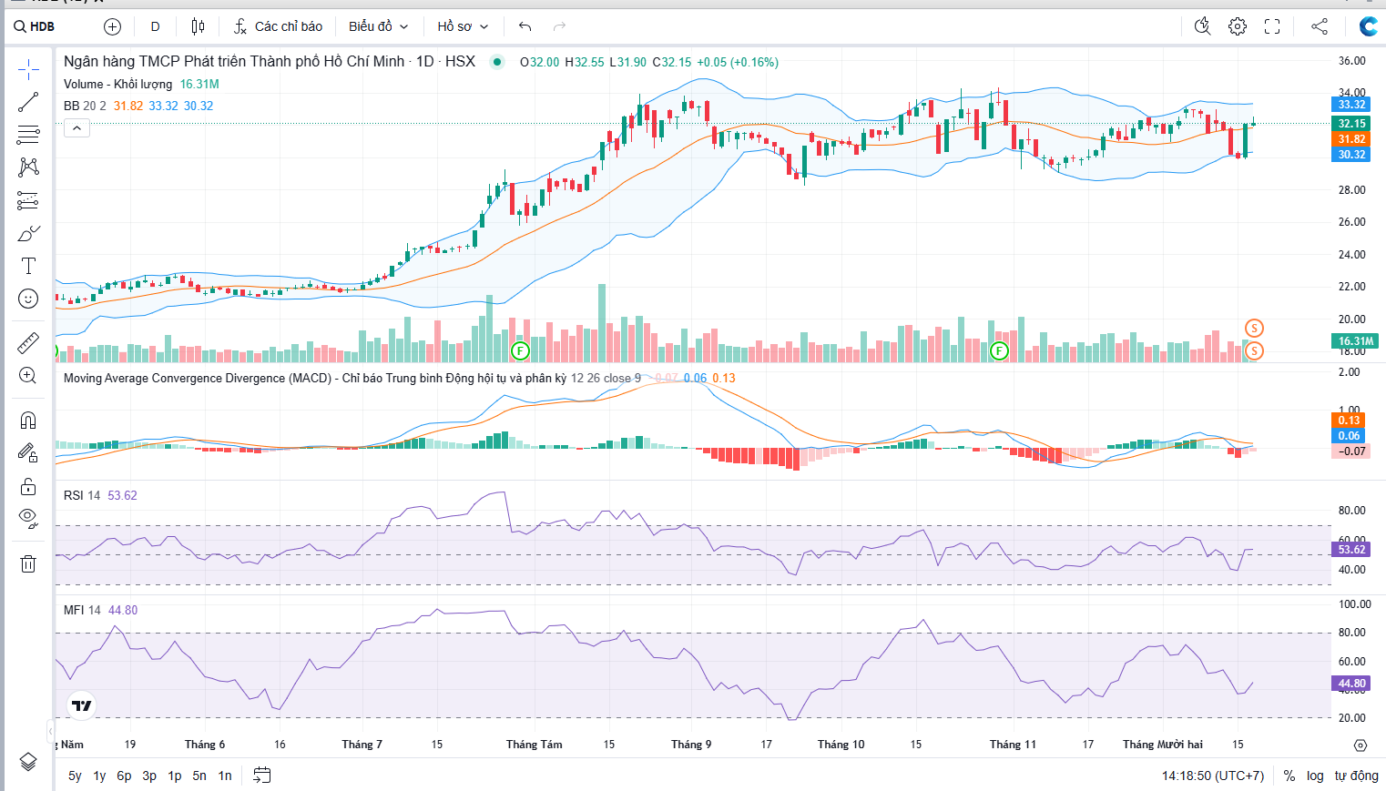 Đồ thị cổ phiếu HDB phiên giao dịch ngày 17/12/2025