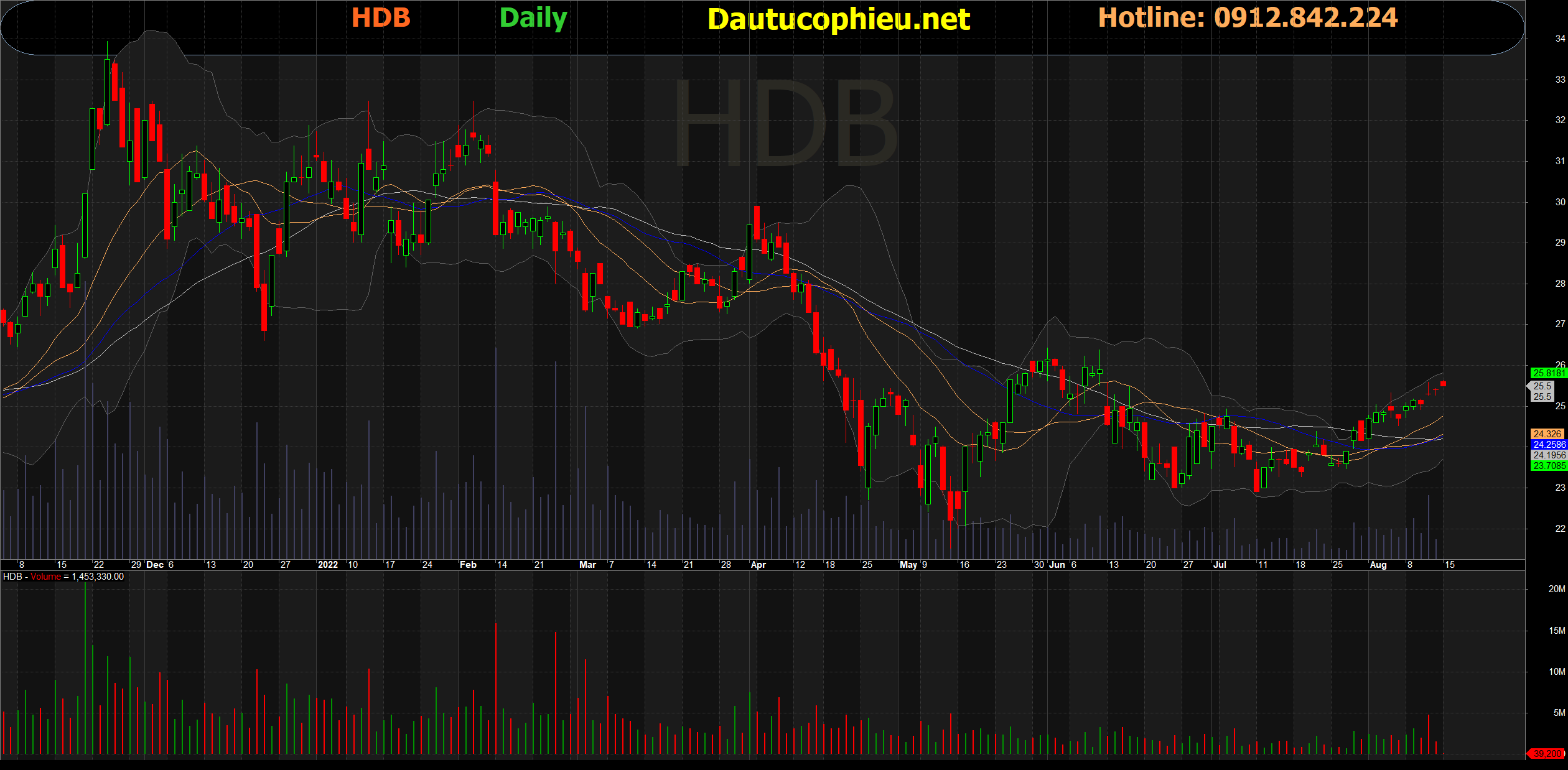 Đồ thị cổ phiếu HDB phiên giao dịch ngày 15/08/2022. Nguồn: AmiBroker
