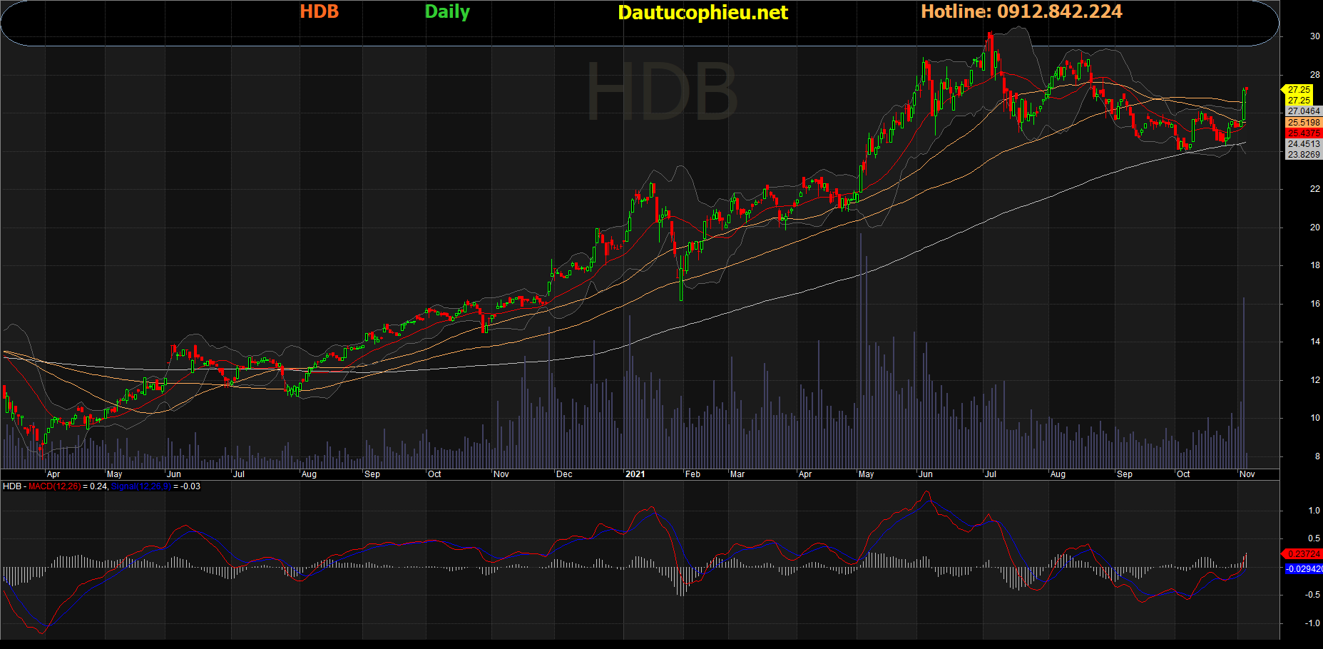 Đồ thị cổ phiếu HDB phiên giao dịch ngày 04/11/2021. Nguồn: AmiBroker