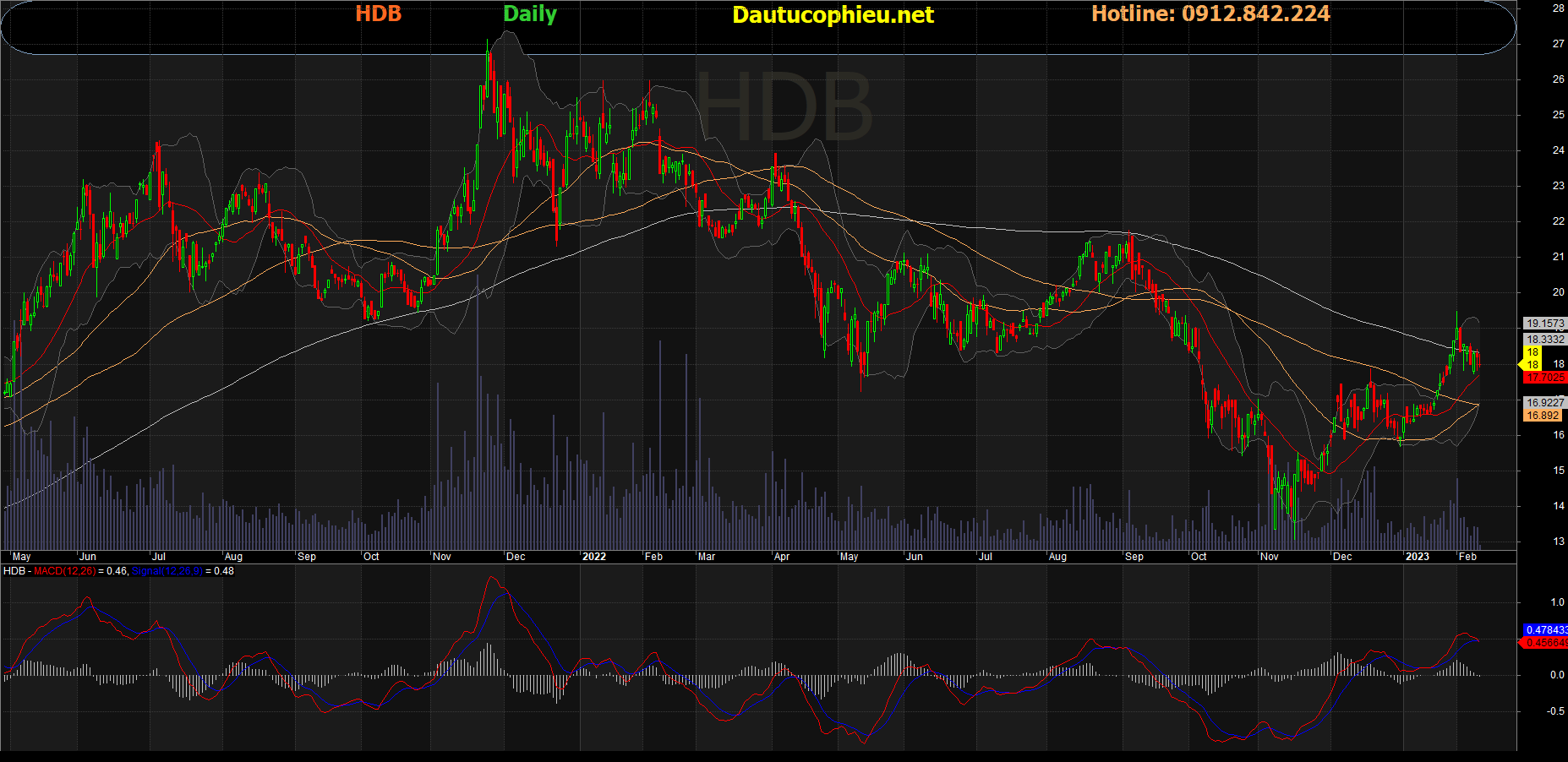 Đồ thị cổ phiếu HDB phiên giao dịch ngày 10/02/2023. Nguồn: AmiBroker