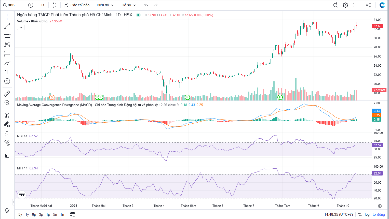 Đồ thị cổ phiếu HDB phiên giao dịch ngày 14/10/2025