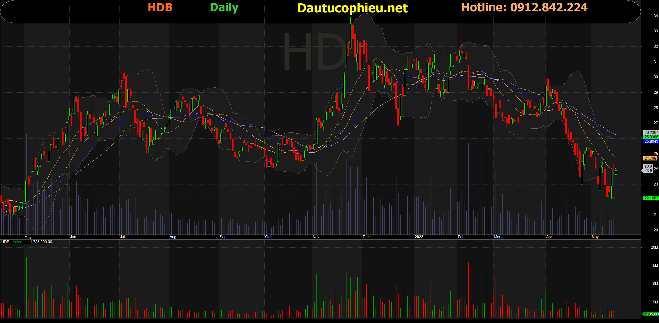 Đồ thị cổ phiếu HDB phiên giao dịch ngày 19/05/2022. Nguồn: AmiBroker