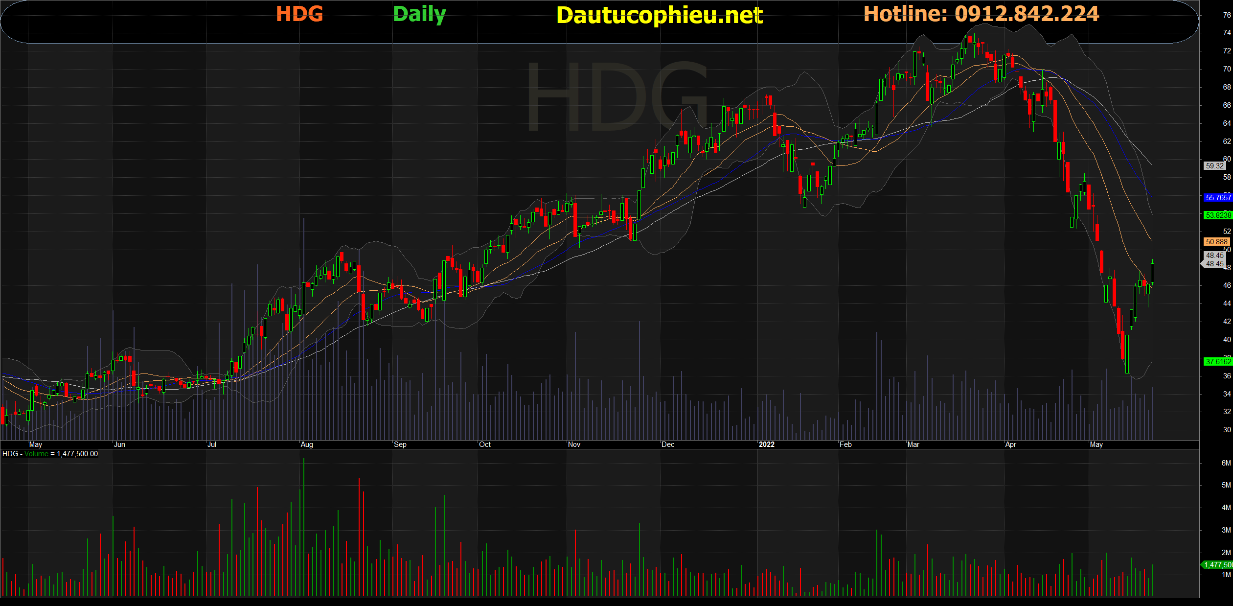Đồ thị cổ phiếu HDG phiên giao dịch ngày 26/05/2022. Nguồn: AmiBroker