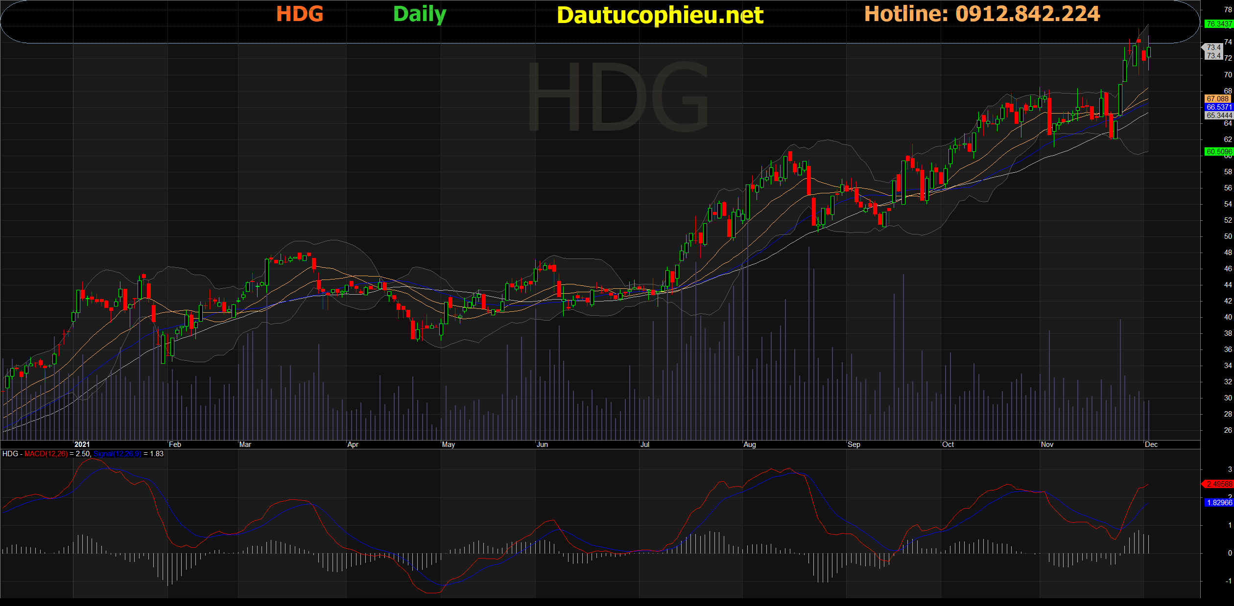 Đồ thị cổ phiếu HDG phiên giao dịch ngày 02/12/2021. Nguồn: AmiBroker