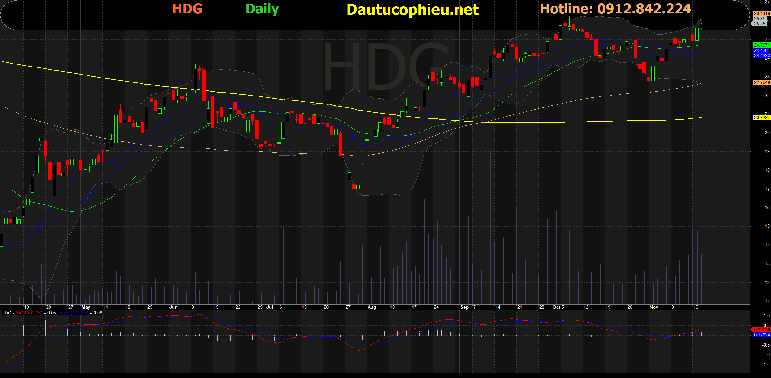 Đồ thị cổ phiếu HDG phiên giao dịch ngày 18/11/2020. Nguồn: AmiBroker