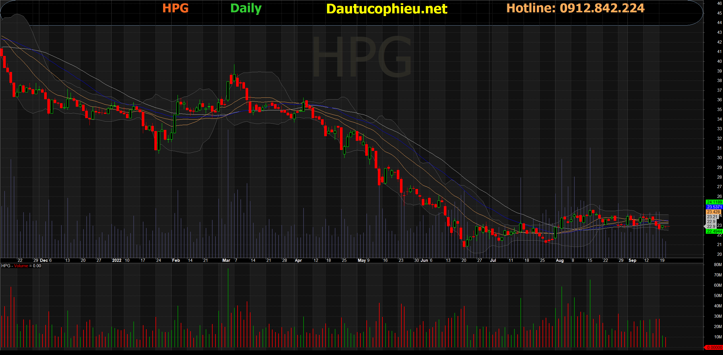 Đồ thị cổ phiếu HPG phiên giao dịch ngày 22/09/2022. Nguồn: AmiBroker