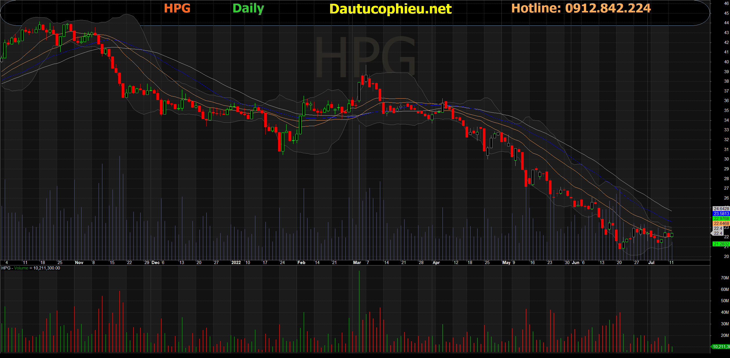 Đồ thị cổ phiếu HPG phiên giao dịch ngày 12/07/2022. Nguồn: AmiBroker