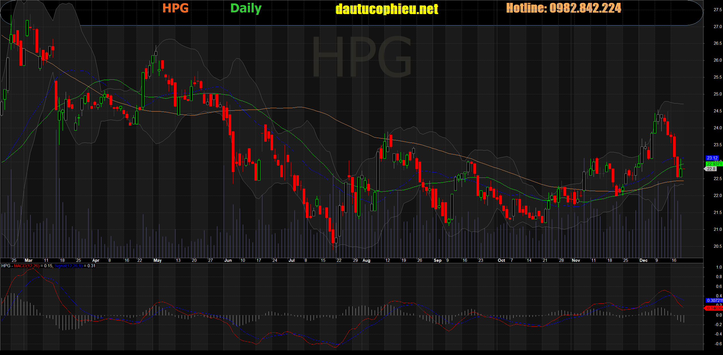 Đồ thị cổ phiếu HPG phiên giao dịch ngày 19/12/2019. Nguồn: AmiBroker.