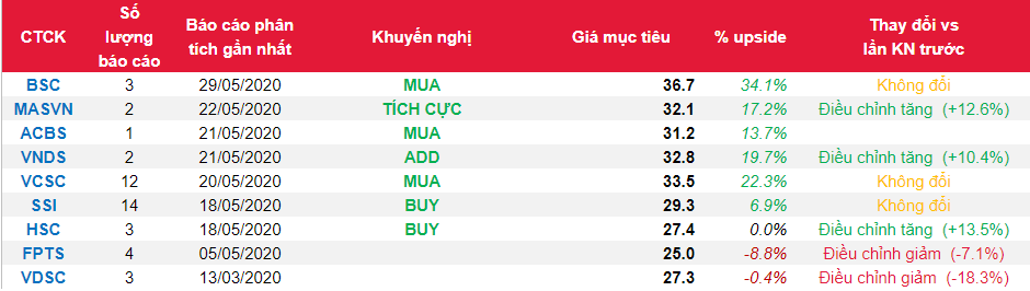 - Cập nhật doanh nghiệp: (1) Kế hoạch kinh doanh 2020: Sản lượng tiêu thụ thép xây dựng 3.5- 3.6 triệu tấn (+26-29% yoy), phôi thép 800 nghìn tấn, ống 750 nghìn tấn tôn mạ 120 nghìn tấn, HRC 500 nghìn tấn. Doanh thu 85,000- 95,000 tỷ đồng (+31-47% yoy), LNST 9,000 – 10,000 tỷ (+20-33% yoy). Mảng nông nghiệp đóng góp 10,000 tỷ doanh thu và 1,200 tỷ LNST. Cổ tức 2019 dự kiến 5% tiền mặt và 20% cổ phiếu. (2) Kết quả kinh doanh Q1/2020: Doanh thu thuần 19,451 tỷ (+28% yoy), LNST 2,305 tỷ (+27% yoy) trong đó mảng nông nghiệp đóng góp 14% doanh thu và 21% LNST. Nếu không tính mảng nông nghiệp, doanh thu thuần đạt 16,453 tỷ (+24.5% yoy) và LNST 1,823 tỷ (+6.1% yoy).