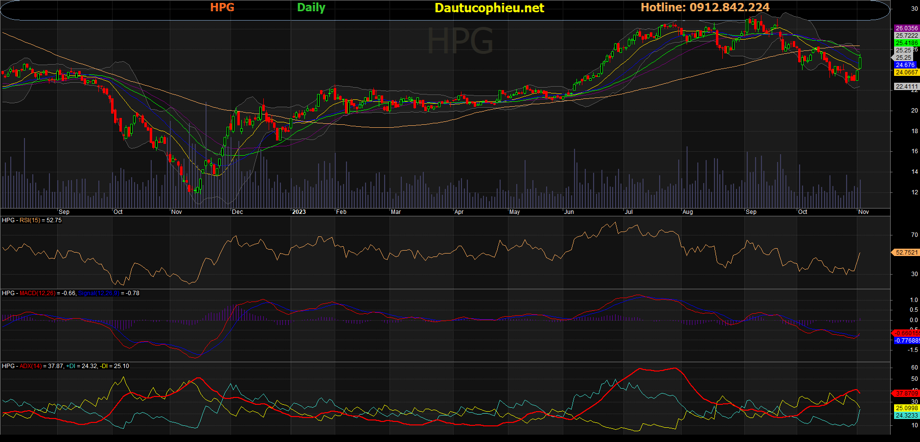 Đồ thị cổ phiếu HPG phiên giao dịch ngày 02/11/2023. Nguồn: AmiBroker
