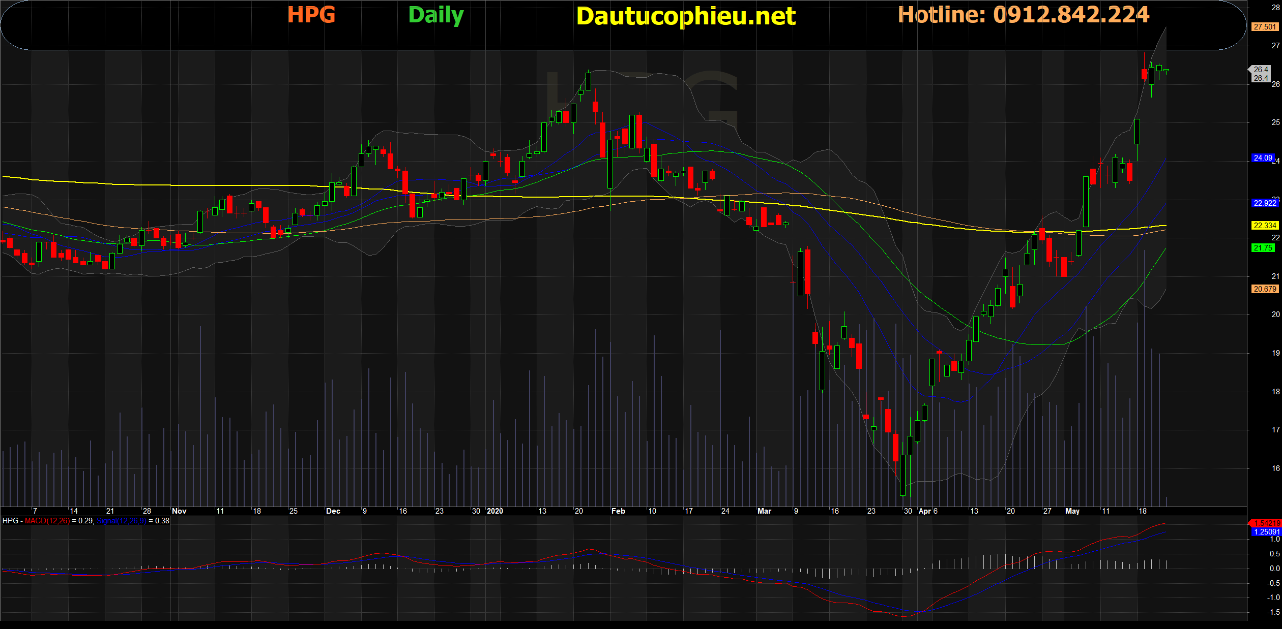 Đồ thị cổ phiếu HPG phiên giao dịch ngày 22/05/2020. Nguồn: AmiBroker