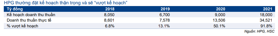Lưu ý, HPG thường đặt kế hoạch thận trọng và sẽ “vượt kế hoạch” (Bảng 2).