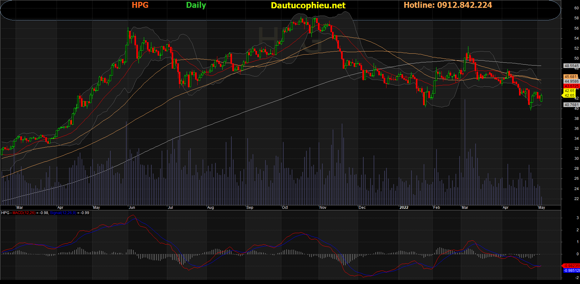 Đồ thị cổ phiếu HPG phiên giao dịch ngày 06/05/2022. Nguồn: AmiBroker