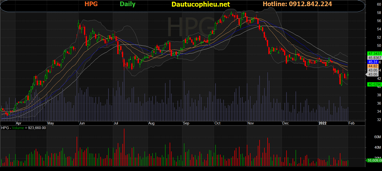 Đồ thị cổ phiếu HPG phiên giao dịch ngày 07/02/2022. Nguồn: AmiBroker