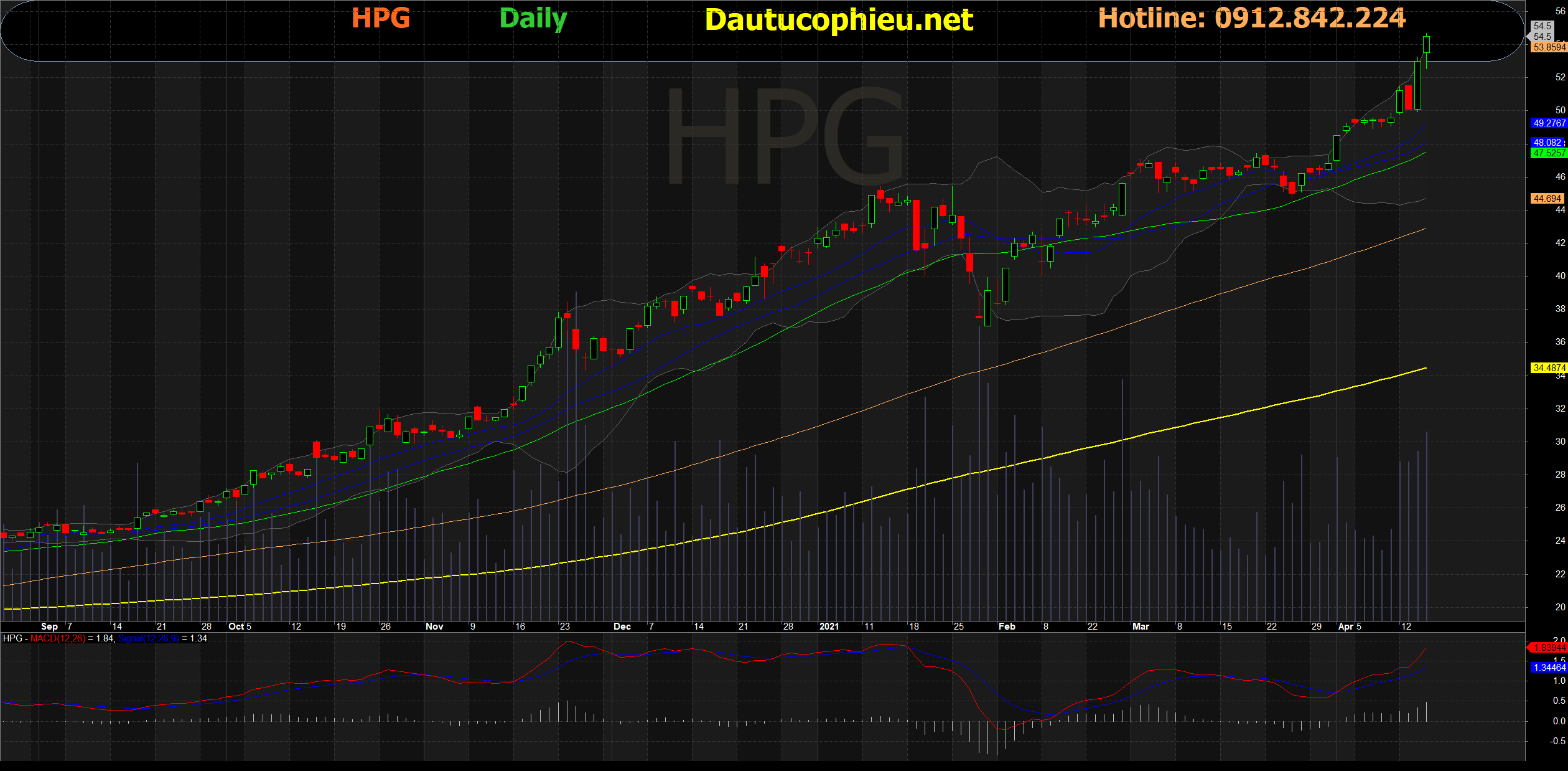 Đồ thị cổ phiếu HPG phiên giao dịch ngày 15/04/2021. Nguồn: AmiBroker
