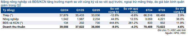 Doanh thu Q2/2025 giảm 9% so với cùng kỳ do giá bán bình quân thấp…