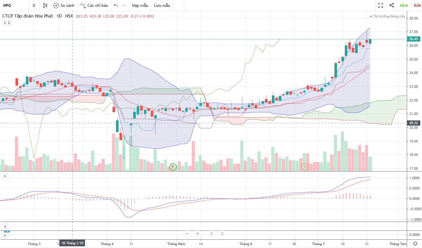 Đồ thị cổ phiếu HPG phiên giao dịch ngày 22/07/2025