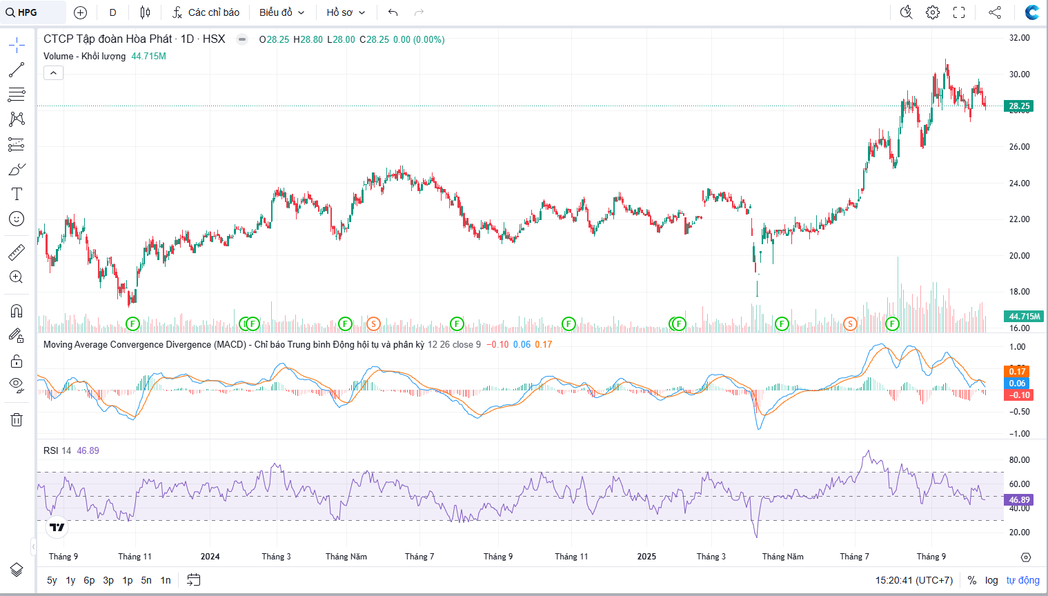 Đồ thị cổ phiếu HPG phiên giao dịch ngày 16/10/2025